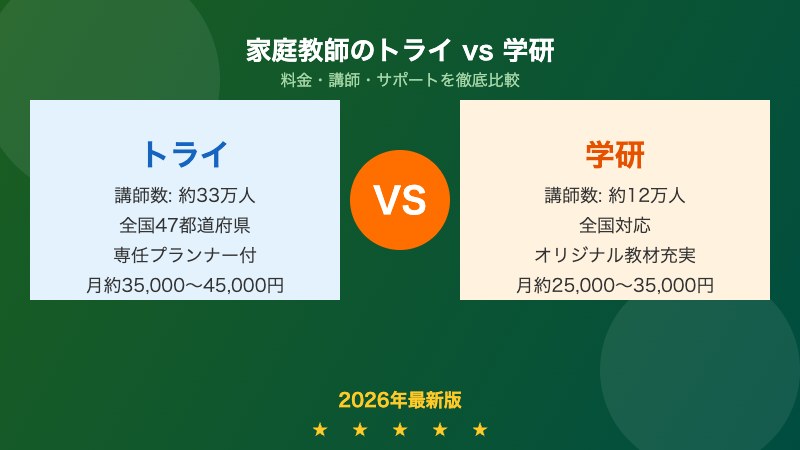 【2026年最新】家庭教師のトライ vs 学研|料金・講師・サポートを徹底比較